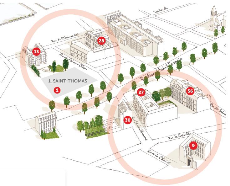 The buildings at 28, rue des SaintsPères, 13, rue de l’Université and 1, Saint-Thomas will be home to the graduate schools, research, the incubator and new learning spaces and formats in general.
