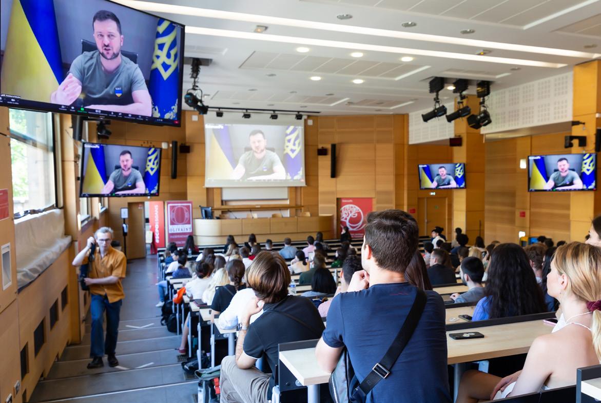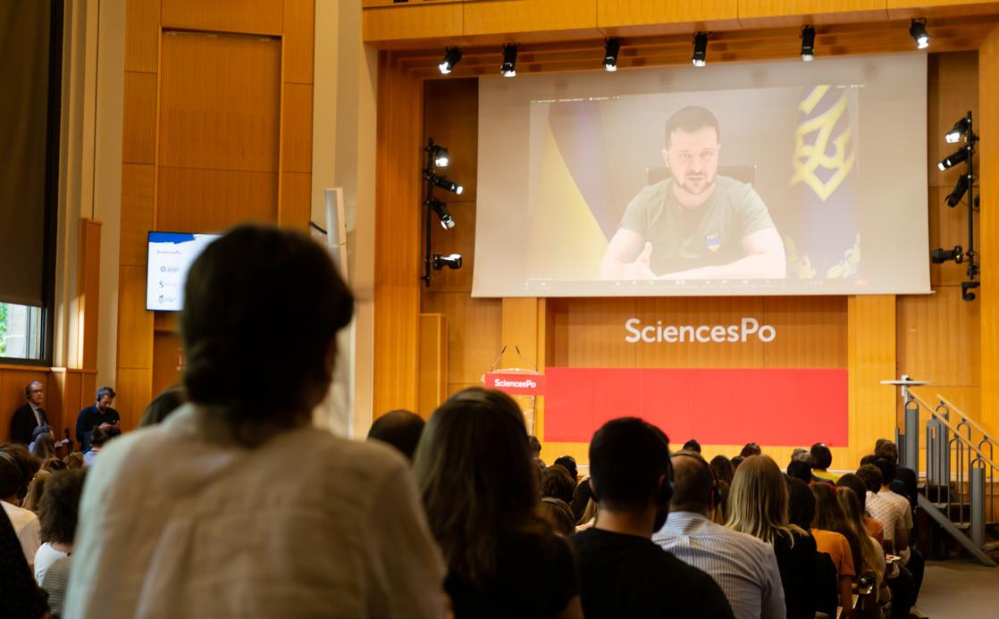 On Wednesday 11 May 2022, Ukrainian President Volodymyr Zelensky conversed for more than an hour with several hundred students, including many from Sciences Po University. Across France, dozens of auditoriums were opened and tens of thousands of people were able to follow, in person or online, this unprecedented exchange.