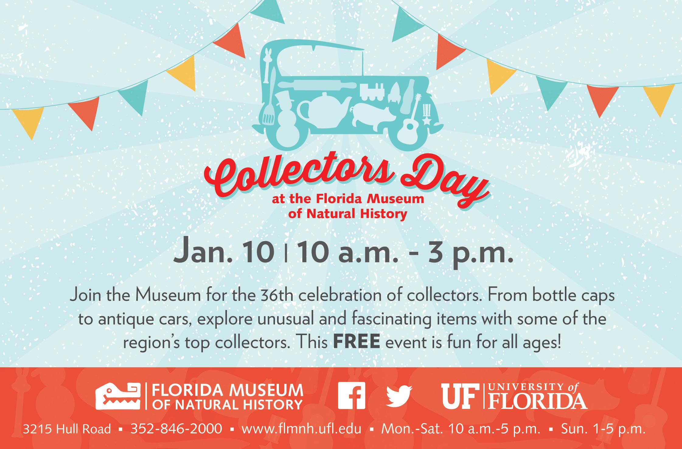 JaNuary 10 Collectors Day florida Museum of Natural History 10 a.m. – 3 p.m. flmnh.ufl.edu
