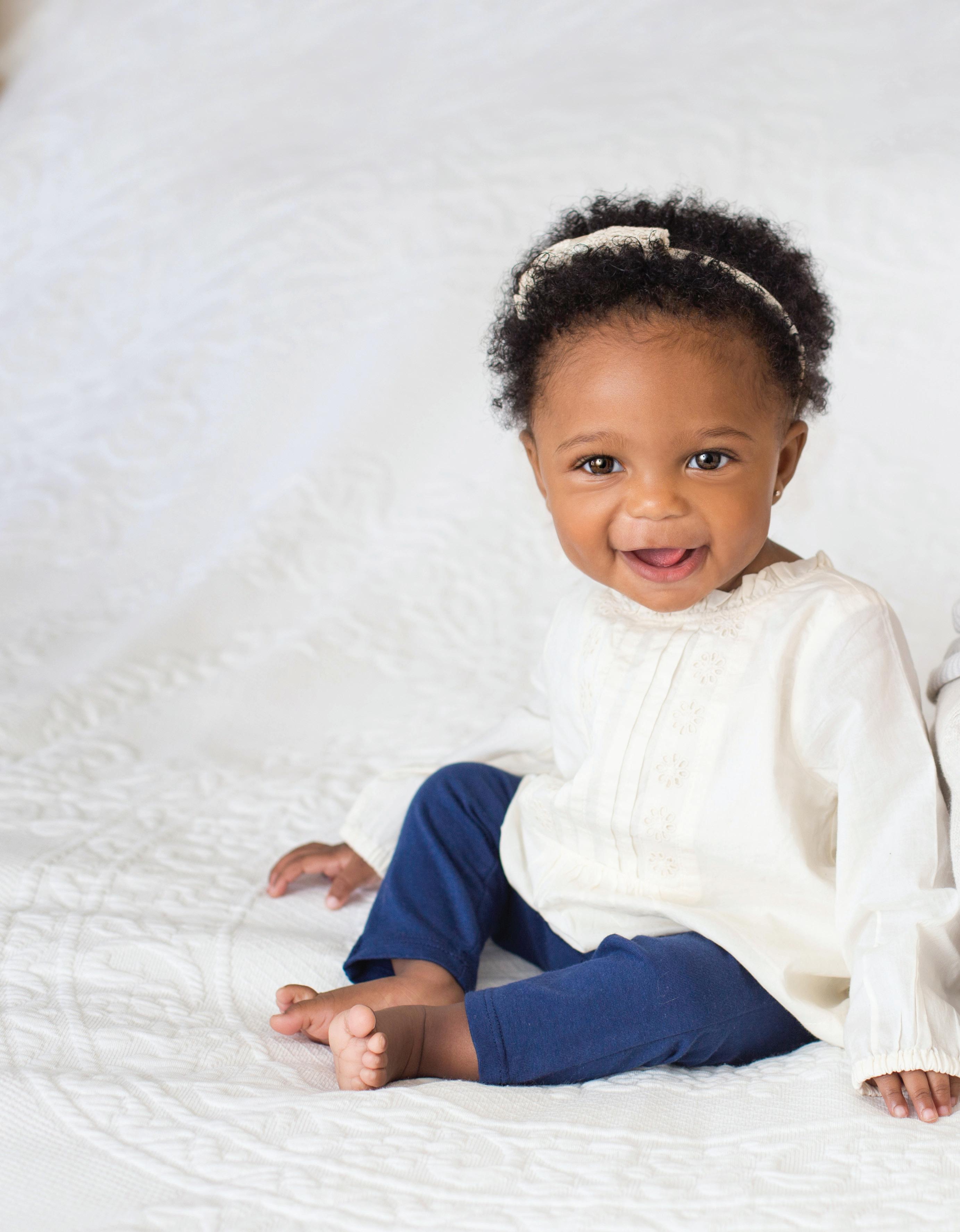 Favorite toy: Crocheted bumblebee her nana made for her Newest milestone: Crawling and standing with support