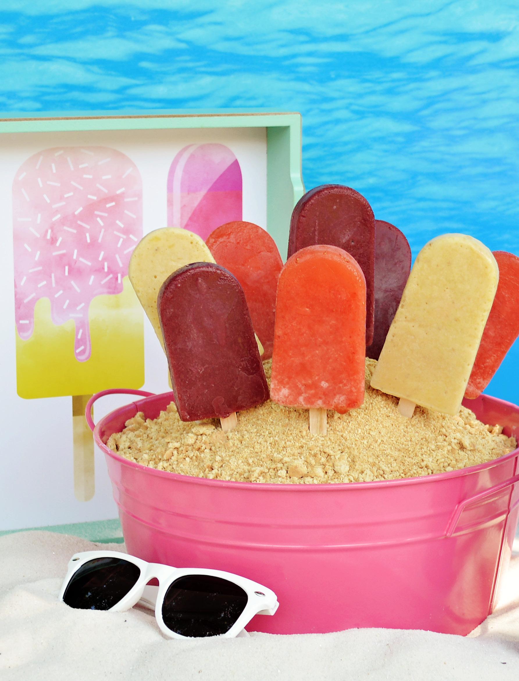 Blend the ingredients together until smooth and then strain through a fine-mesh strainer to remove seeds. Pour the mixture into your ice pop molds. Insert your sticks into your molds and freeze until solid.