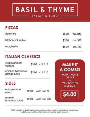 Pair the Piadini and Pasta Bake marketing with any Basil & Thyme menu variety to spotlight these craveable features!