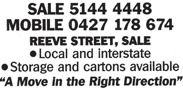 Sale Food Support Inc is nowopen. Pictured are managger Jan Lear and assistant manager Terry Fields. Ph:Jason0402851544 FINDUSON: GP1 646302 Mektrac.com.au CompletePitSilageService Grass-Maize-W GrWholeCrop ass-Maize-WhooleCrop 273York Street,Sale Phone: 51441311 LMCT.12209 Viewall our carsat www.salemitsubishi.com.au SALE MITSUBISHI T NSTT AND-OUT BARGAINS BA AI GP1648742 2011HoldenUTE SSVVESeriesII 2011Nissan DualisTI 2017Mazda BT-50XTR $30,990 Driveaway $17,990 Driveaway $50,990 Driveaway 128 363km 1KJ 2EQ 141662km YJV970 52,728km AVY 075 RaymondStreet, Sale Phone51445746 HAIRISKANYEMBA “A satisfied customer We should have him stuffed.” Basil Fawlty Try us out at When you look in the mirror and think,“didI really look likethat allday?”