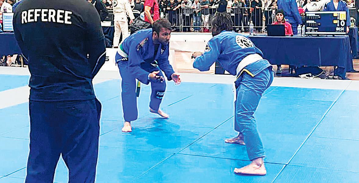 Rexly Theuil (right) comepeting at the AustralianJiu JitsuChampionships.