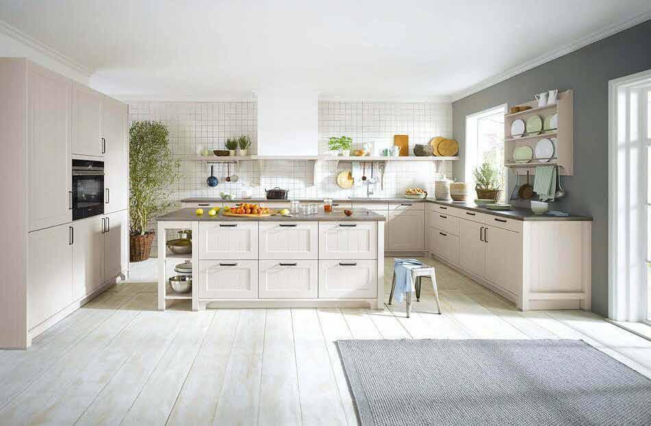 empfängt Sie eine Küche im behaglichen Landhausstil. Als dominierendes Element einer opulenten Familienküche oder als attraktive Wohnraumerweiterung lädt solch eine Küche zu jeder Tageszeit zum Zusammensitzen ein. Trotz der traditionellen Anmutung lässt eine Landhausküche in puncto modernster Technik keinerlei Wünsche offen. Überzeugen Sie sich selbst!