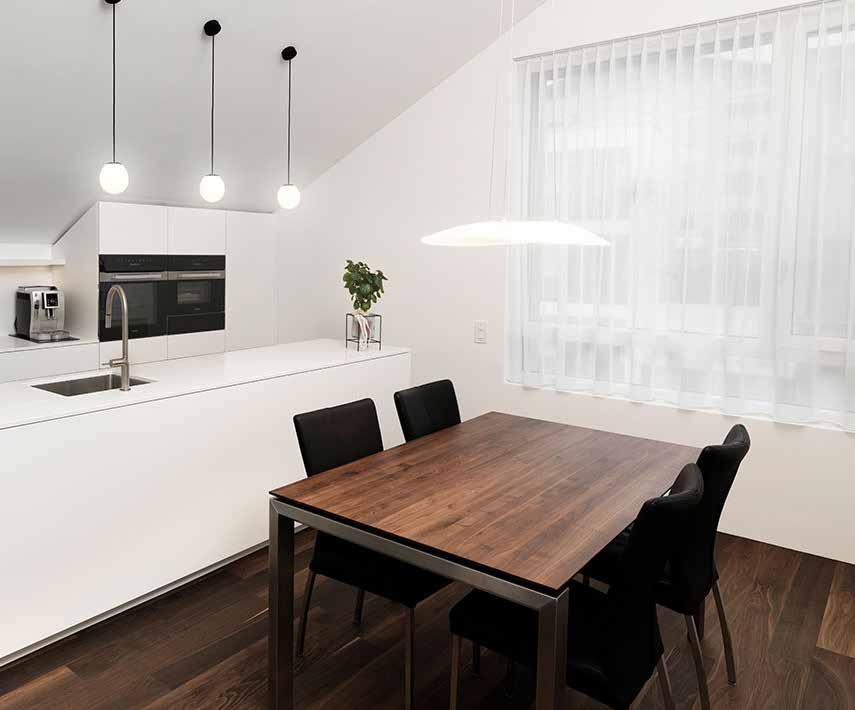 rein funktionale Räume waren, sind vorbei. Heute sind sie das Herzstück vieler Wohnungen – offen, stilvoll, oft verbunden mit Wohn- und Essbereich. Dieser Wandel zeigt sich auch in den Anforderungen der Kundschaft. «Natürlich ist Design heute wichtiger als früher», so Widmer. «Aber am Ende zählt immer die Balance zwischen Optik und Alltagstauglichkeit.»