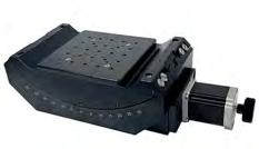 while the -02 option features a three phase-servo motor with a quadrature optical encoder. The -03 version offers a DC servo motor with a quadrature optical encoder, and the -04 option is stepper motor driven with quadrature optical encoders. The stage series offers a 160mm x 160mm table. The center of rotation is 136mm above the surface of the table and the radius of rotation is 203mm. www.oesincorp.com