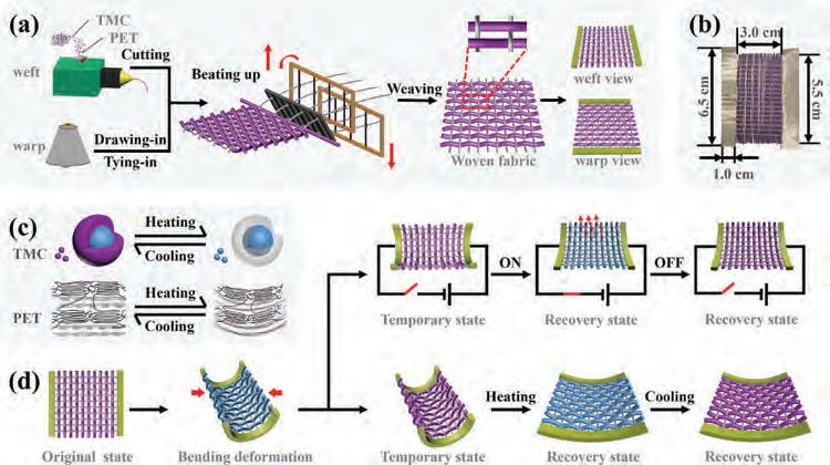 Employing a melt-spinning process, the UWaterloo team formed metallic composite yarns and thermochromic fibers. Weaving them together allowed the researchers to compose a multi-responsive smart-fabric that transforms from a predefined structure to its original shape while also changing color when exposed to heating or an electric field.
