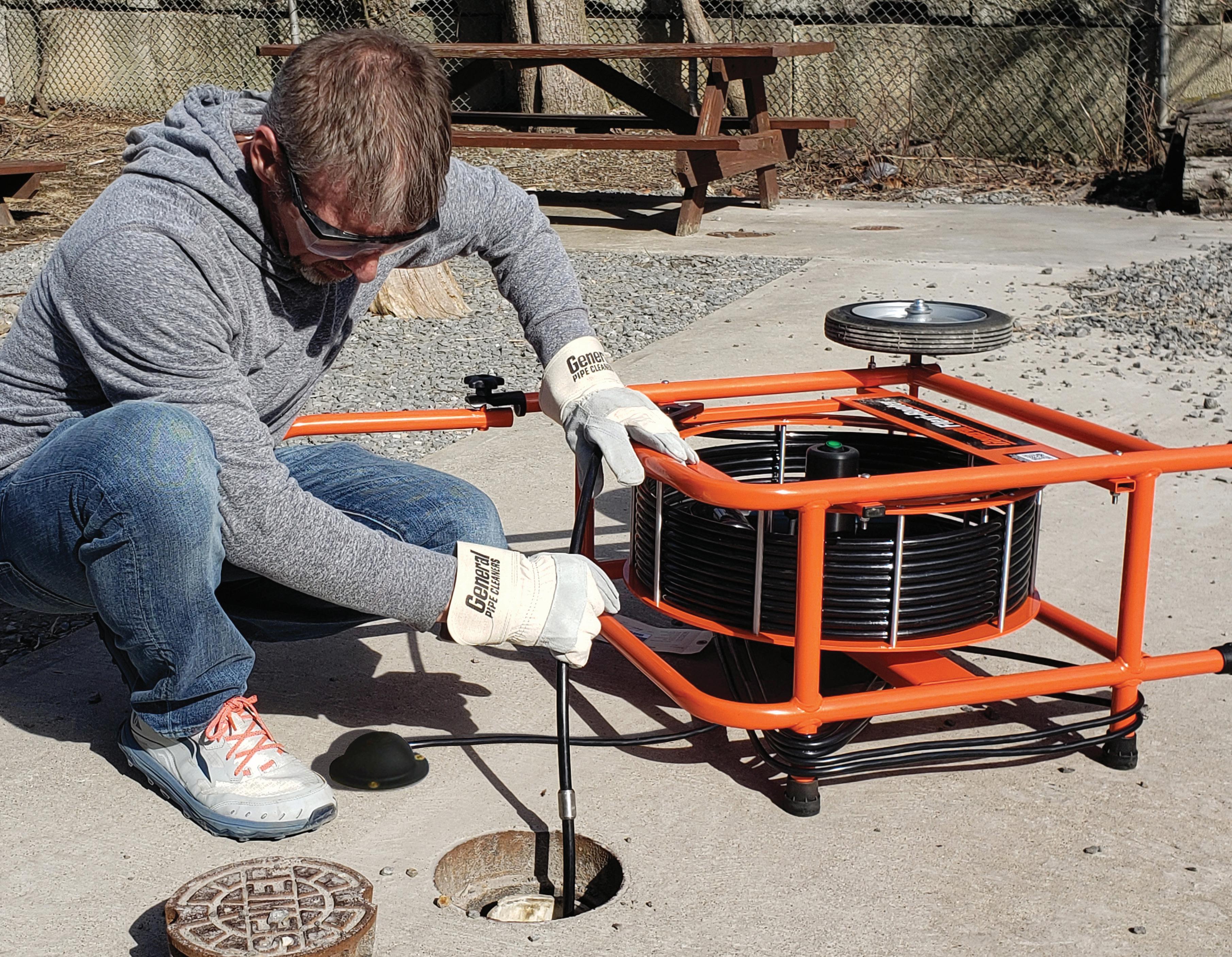 The rotating shaft is 10 times faster than traditional shafts, yet easy to handle. It’s extremely exible for clearing 2" lines, yet strong enough to cut roots in 4" lines up to 75 feet long. Plus, the foot pedal leaves both hands free to guide it into the drain.