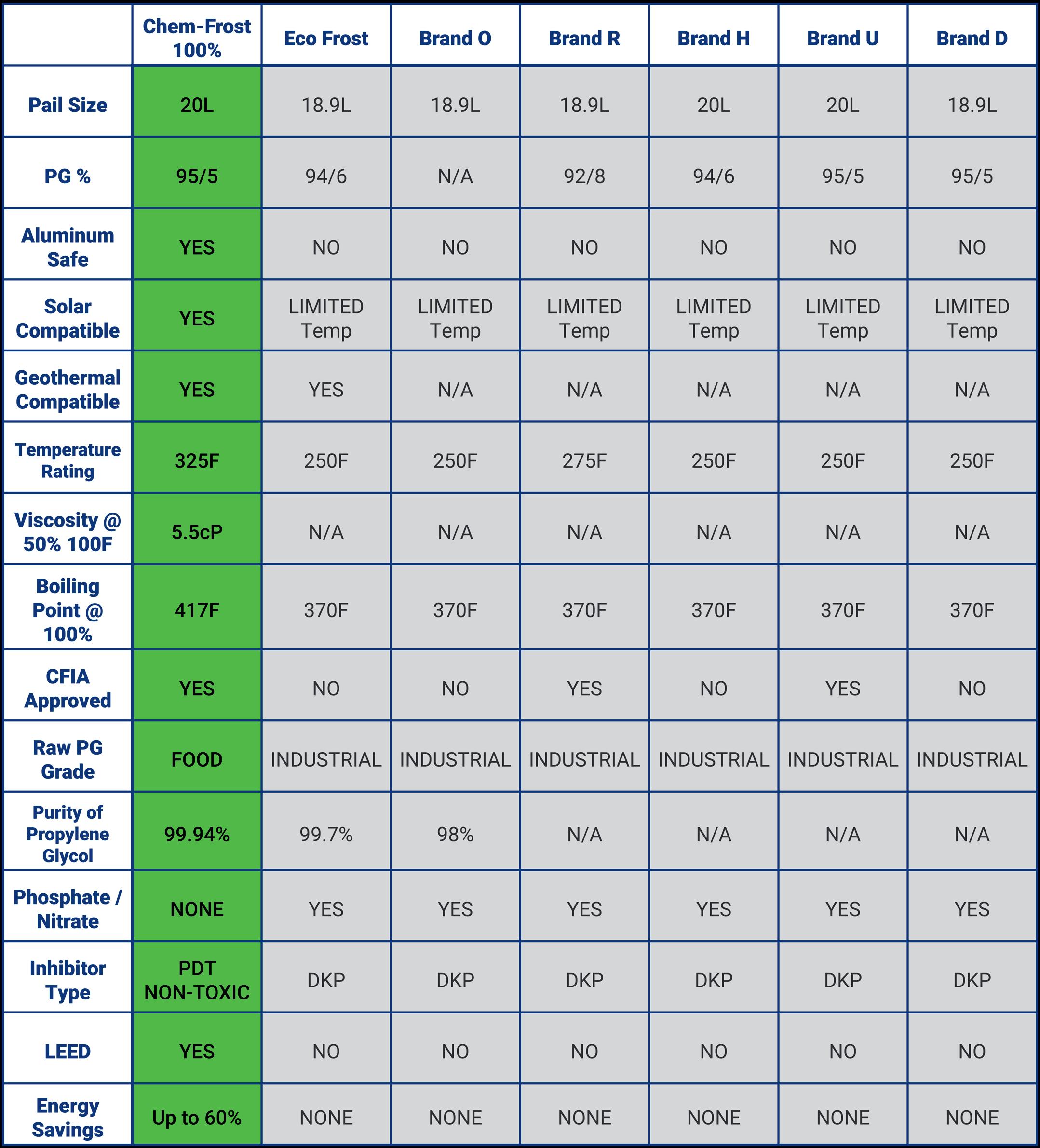 PROPYLENE GLYCOL COMPARISON CHART