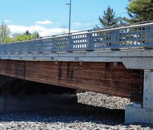 Details: The Duchesnay Creek Bridge replacement was built using laminated, high quality Douglas Fir girders and a bridge deck constructed with 28 precast deck panels.