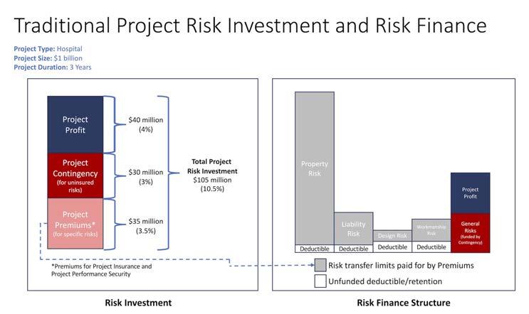 Under these traditional structures, there is no mingling of the insurance/surety premiums used to finance traditionally insurable project risks, and the contingency and profit funds which are used to fund uninsurable costs/risks.