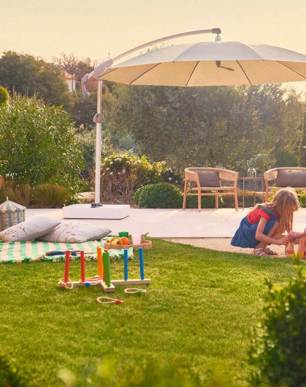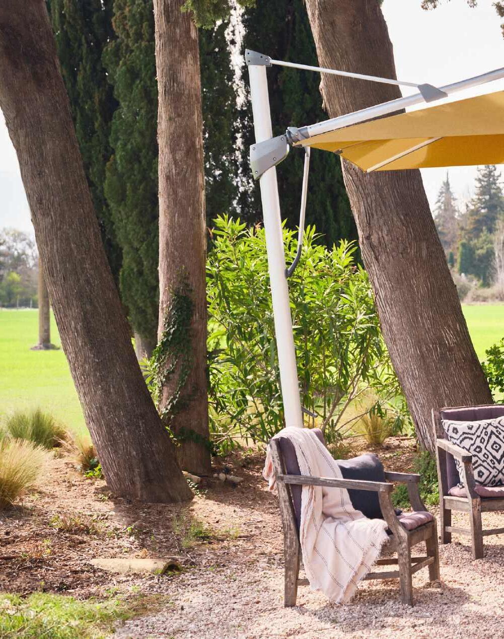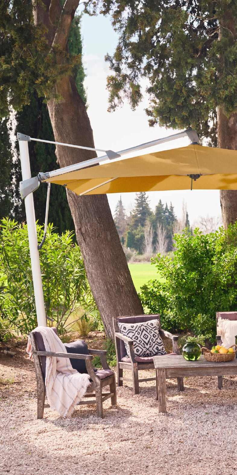 Pour les terrasses et les jardins... Nous connaissons l’importance que vous accordez à votre cadre de vie. Raison pour laquelle nous fabriquons des parasols qui reflètent au plus près votre style : de l’agencement futuriste d’une piscine au jardin derrière la maison. Nos produits sont intemporels, fonctionnels et durables... et donc des incontournables des très longs étés dans la plus belle résidence estivale du monde : votre jardin.