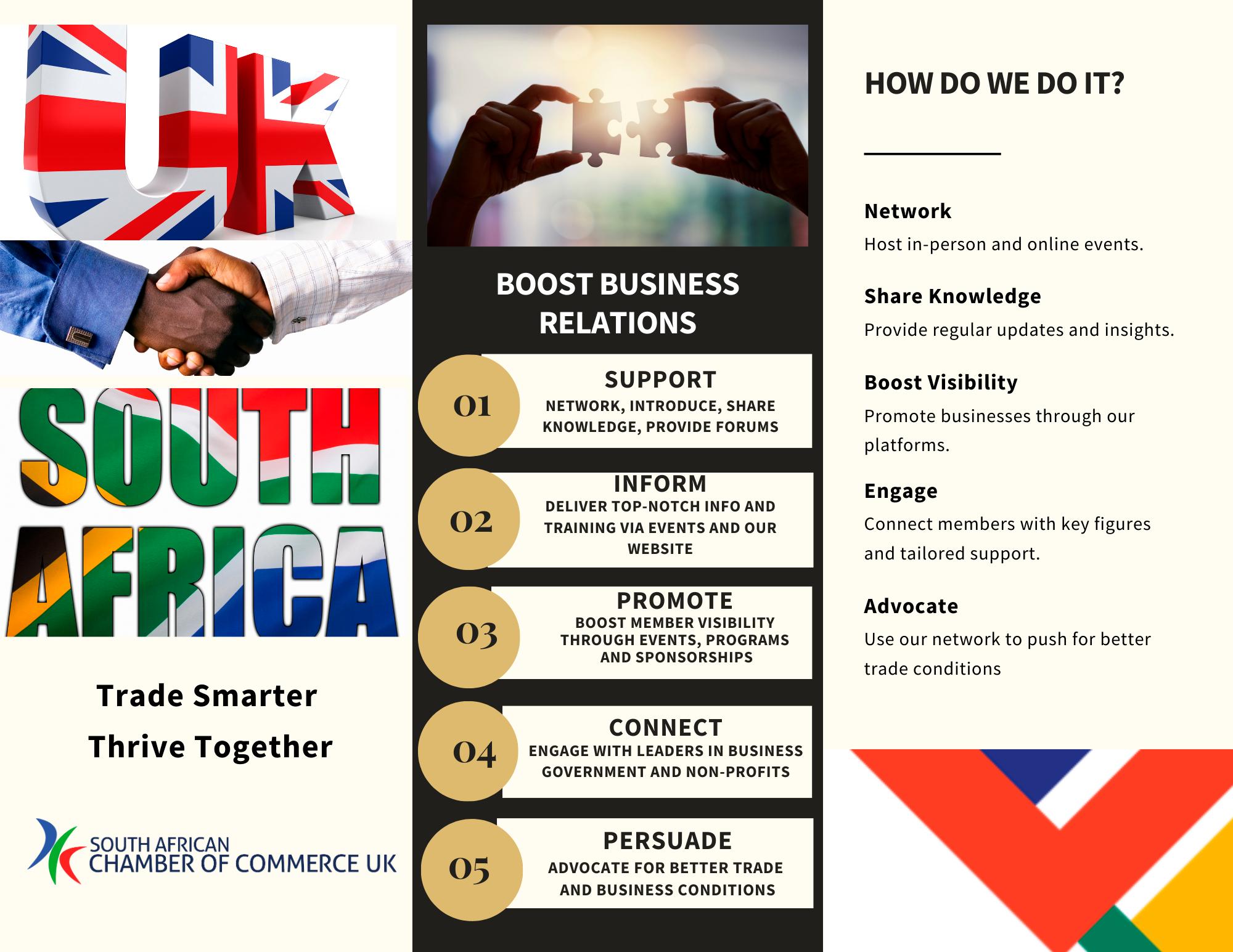 SACCI has been active in hosting a series of trade delegations from South America and Asia, as well as working to coordinate business relationship across the African continent.