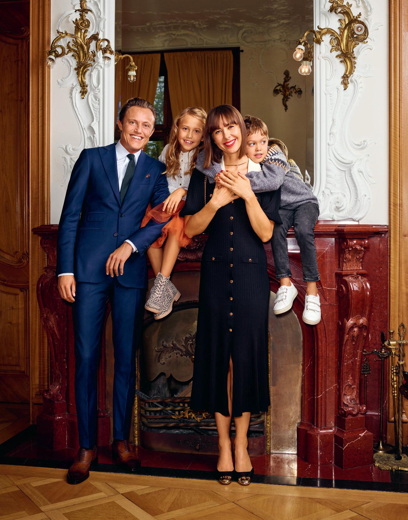 Stefan: ELEVENTY Veston 890.– Hose 260.– FILIPPO DE LAURENTIIS Pullover 440.– DOUCAL’S Boot 390.–Brigitte: BOSS Pullover 499.– WINDSOR Lederhose 699.– DOUCAL’S Boot 440.–«Die schönste Weihnachtserinnerung? Natürlich, als der Baum in Flammen stand! Das fanden wir superlustig. Im Nachhinein.»