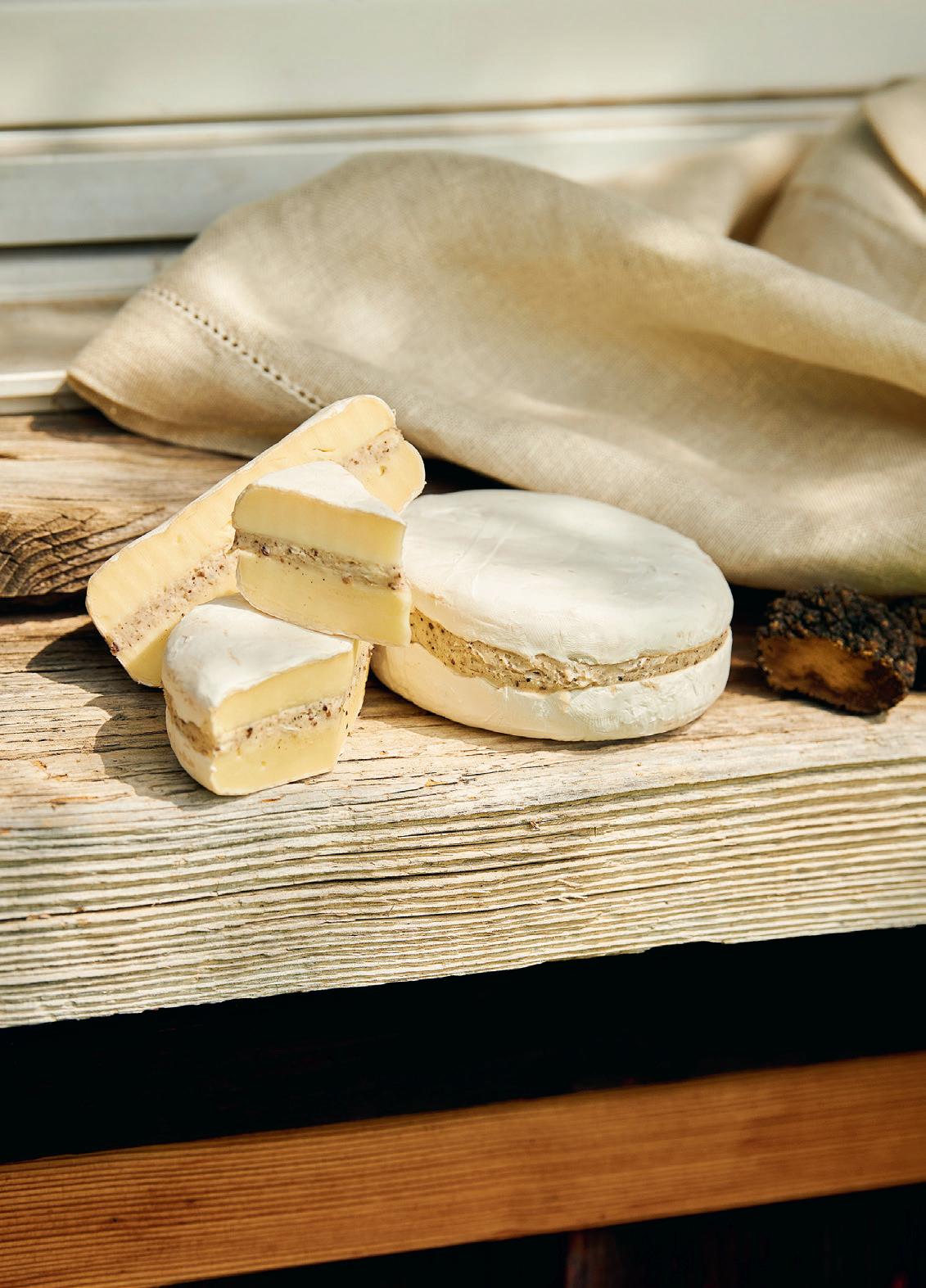 Wie wird man Käsekonditor? Gründer Max Eberle senior war ei gentlich gelernter Bäcker-Konditor. Seine Mehlstauballergie zwang ihn jedoch, sich neu zu orientieren – und so begann Eberle 1974, seine Vision einer Käsekonditorei zu verwirklichen. Heute veredeln im sankt-gallischen Gossau rund 120 Hände Käsehalb fabrikate zu Käsedelikatessen. Der kreative Enthusiasmus, das hand werkliche Geschick und die grosse Neugierde, für die Eberle seit je steht, brachte dem engagierten Team kürz lich den Innovationspreis an den Swiss Cheese Awards ein. Und sie zeigen sich in jedem einzelnen Produkt, nicht zu letzt dem Trüffelbrie, auf den Globus seit Jahren vertraut.
