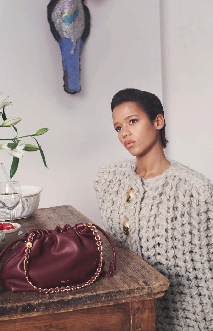 Handtaschen wie die «Pebble Bucket» und die neueste Ergänzung der ikonischen «Flamenco»Familie, die «Flamenco Purse», sind meisterhaft aus Nappa- und Kalbsleder erschaffen worden und fallen durch ihr aussergewöhnliches Design auf. Tragbare Kunst für den Alltag trifft auf jahrhundertealtes Kunsthandwerk und wird in Ihrer Hand zum Leben erweckt. Loewe steht für eine Ästhetik, die weit über das hinausgeht, was wir unter «Fashion» verstehen. Dafür sorgt in dieser Saison eine raffinierte Farbpalette aus Camel- und Grautönen sowie Schwarz, die mit lebhaften Akzenten in Rot und Mandarine abgesetzt wird. Die neue Accessoireskollektion lädt so zu einer sinnlichen Entdeckungstour durch die Welt von Mode und Kunst ein.