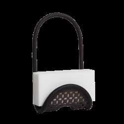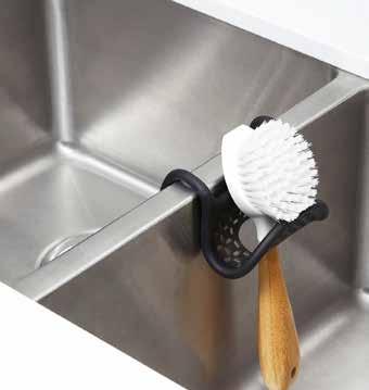 Carrito de fregadero. This flexible caddy makes a perfect fit for all sink sizes. Coated wire forms to the shape of your faucet neck or sink wall. Cutouts allow for drainage preventing moisture buildup and mold. Hand wash recommended. Approx. 10” H x 5” W x 1-1/2” D.
