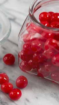 Cerezas Agridulces. These bite-sized sour explosions deliver a mouth-puckering cherry punch. Jar not included. Zero trans fat. 9 oz. No allergens.*