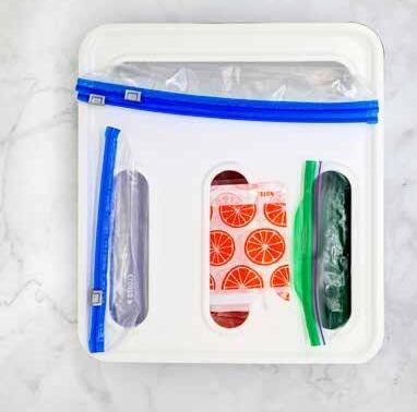 Bolsas reutilizables conjunto de 12 para comida. Versatile set of clear bags to make storage easy! Set includes (4) Large, (2) Medium and (6) Small Bags. BPA Free. Hand wash recommended. Air dry to re-use. Large approx. 8-1/4" H x 11" W, medium approx. 7-1/2" H x 10-1/4" W, small approx. 6-1/2" H x 9-1/2" W.