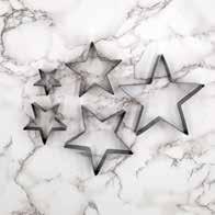 Conjunto de 5 cortapastas con forma estrella. 5 different sizes of stainless steel star cookie cutters. Diameters approx. 1-1/2", 2-1/2", 3-1/4", 4", 4-1/2".