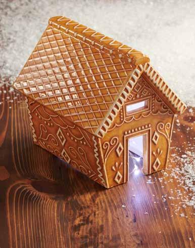 Votivo de cerámica con forma de casita jengibre. Warm up your home with our gingerbread tealight holder. Crafted from stoneware, glazed and hand painted to provide years of holiday decor! Use tealight or LED lights to illuminate (not included). Approx. 6" H x 7" W x 5" D.