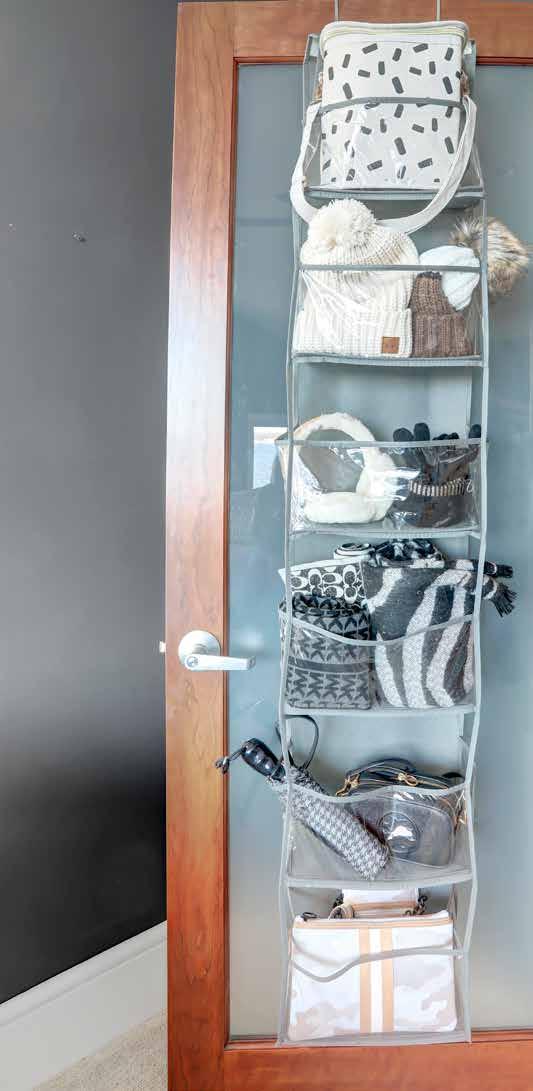 Organizador de puerta pa ahorrar espacio. Take organization to the next level with this over the door fabric organizer with 6 clear pockets. So many different uses! Use for the kids toys, clothes, craft items, pantry storage and so much more! Just put the metal door holders over your door and you are ready to go! Approx. 66-1/2” H x 11-1/2” W x 5” D. 3368 • $29.00