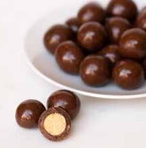 Nueces Pacanas cubiertas con caramelo y chocolate. Pecans and caramel smothered in milk chocolate. 7 oz.
