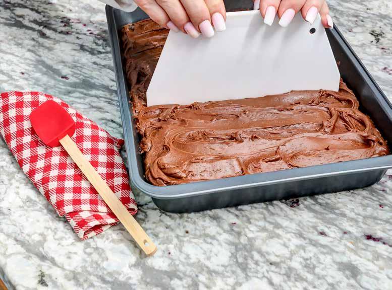 Molde para hornear con cortador antiarañazos. Our non-stick baking pan is perfect for baking brownies and other sweets. Effortlessly cut through treats with the included plastic cutter, without damaging the pan. Spatula not included. Approx. 3" H x 11" W x 8" D.