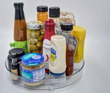 Bandeja de almacenamiento giratoria. Revolving turntable maximizes storage space, especially in those hard-toreach places in the cupboard or refrigerator.Approx. 1-3/4" H x 10-1/2" Dia.