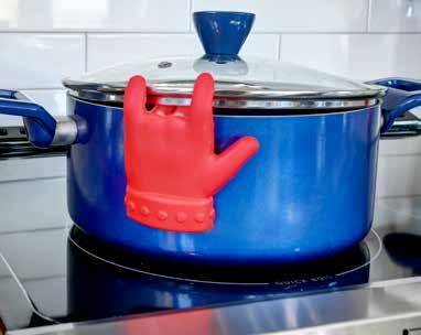 Ayudante práctico para evitar derrames. This hand-shaped pot holder helps to prevent overflow and doubles as a spoon rest. Dishwasher safe. Approx. 3-1/2" H x 4-1/8" W x 1" D.