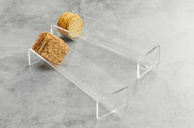 Soporte para galletas - Juego de 2. This acrylic cracker holder set is perfect for serving crackers or cookies. Set includes one square and one round tray to serve your favorite crackers, cookies biscuits and more! Hand wash recommended. Approx. 1-1/2" H x 8-1/2" W x 2-3/4" D.
