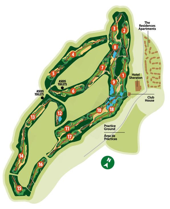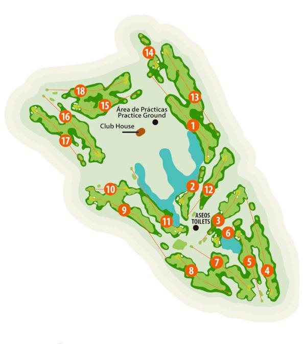 Its 18 holes are divided in 9 holes near the beach and 9 holes located in an environment surrounded by mountains; different points of view and even different kinds of weather. Apart from this distinguishing feature, the golf course has superb tees from some holes, excellent fairways and three strategically located lakes that add interest to the game.