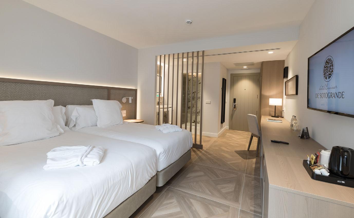 The new Hotel Encinar de Sotogrande has been completely transformed into a modern and welcoming space, while maintaining a deep respect for its natural surroundings and historical legacy. Our building, part of which has been declared Historical Heritage by the Junta de Andalucía, maintains its emblematic character, giving it a unique charm that combines history and modernity. With 106 fully renovated rooms, we offer a balance between luxury, comfort and sustainability. The common areas have been redesigned to create a relaxing and exclusive atmosphere. While we are very proud of this transformation, one of our current challenges is to improve the personalisation of guest experience, so we are integrating technologies and new standards that will allow us to offer services even more tailored to individual preferences.