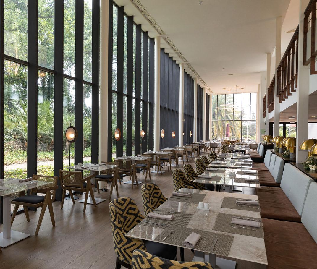gastronómicos han sido diseñados para fusionar elegancia y tradición, con interiores acogedores y una terraza al aire libre que ofrece vistas espectaculares a jardines históricos. Uno de nuestros retos es seguir innovando en la oferta gastronómica. Estamos en proceso de desarrollar eventos temáticos con chefs invitados, además de expandir nuestra oferta con menús saludables y sostenibles, alineados con las tendencias actuales de consumo consciente.