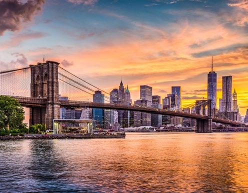 1: SUMMIT One Vanderbilt See the dazzling city skyline from this unique observatory featuring awe-inspiring architecture. 2: Food walking tour Discover the eclectic mix of cuisine on a tour through the city’s diverse neighbourhoods. 3: Liberty Island Board a ferry across to see the Statue of Liberty with a stop at Ellis Island included. 4: Broadway Take in one of the many shows and immerse yourself in bustling Times Square. 5: Brooklyn Bridge Head downtown to Brooklyn and walk across the famous bridge – you’ll get the best views of Manhattan. 6: Radio City Music Hall This historic theatre in the Rockerfeller Center is the famous home of the iconic Rockettes.This boutique hotel offers a central Midtown location and fantastic Empire State Building views from its rooftop bar.
