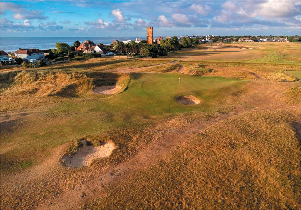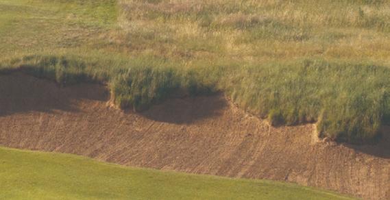 The 160-yard 7th feels somewhat at odds with the rest of the course, with the tee towering 100 yards above a green which is protected by a large pond on the right-hand side. The run of ve par fours from the 8th to the 12th seems a little repetitive when looking at the scorecard, but the reality presents distinctly di erent challenges, and the 11th and 12th are excellent examples of their type. Things hot up at the 13th, a magni cent par-5 which ducks back in among the dunes, while the par-3 14th is a downhill hole which plays as short as 120 yards to a green which is protected by a deep front bunker and steep-run o s.