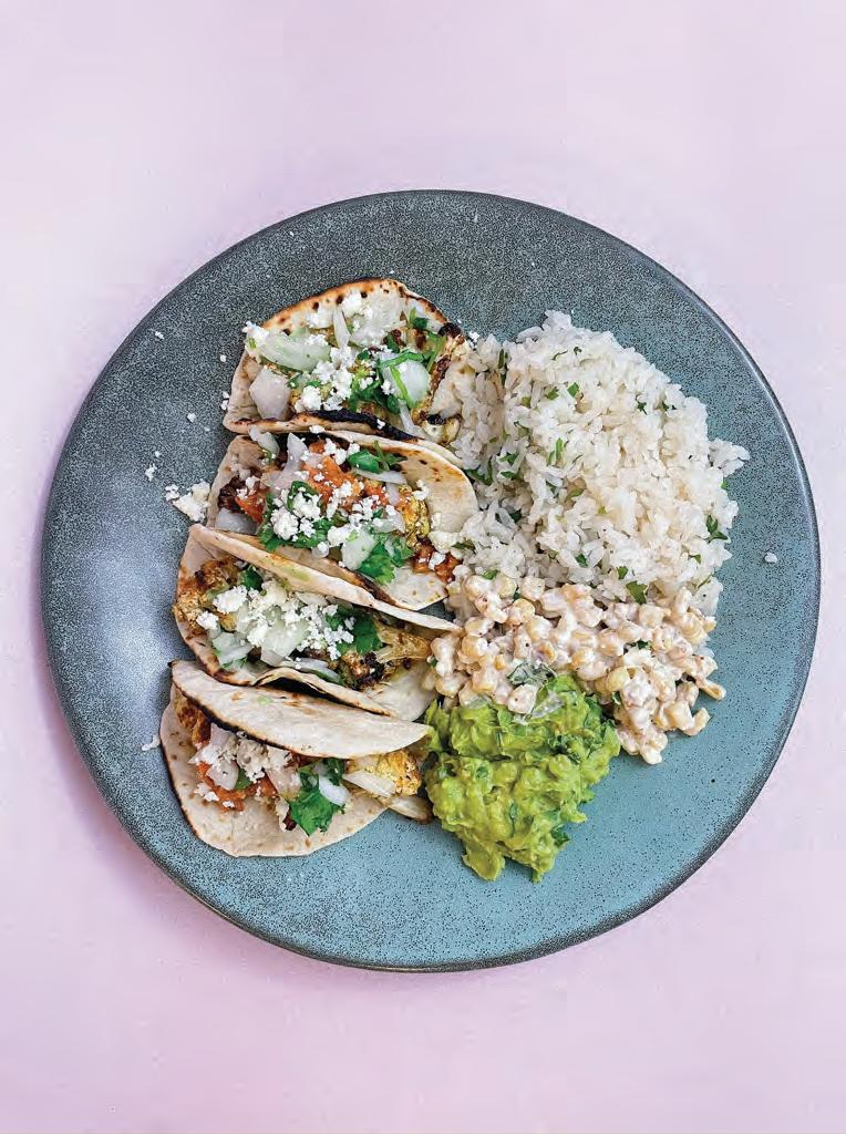 Preheat your oven to 425F. Chop your head of cauliflower into smaller pieces and add to a small mixing bowl. Toss the cauliflower in green salsa, olive oil, cumin and salt and pepper. Roast cauliflower for 25-30 minutes, flipping halfway through. Assemble your tacos and garnish with onion and cilantro!
