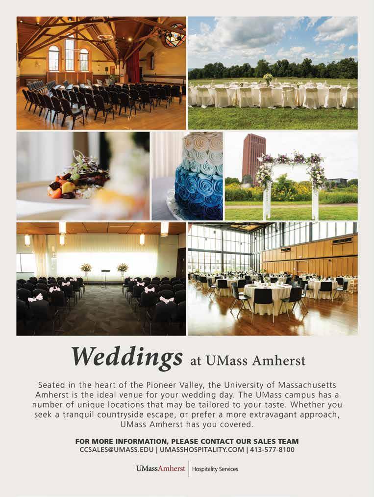 Celebrating a milestone event at UMass Amherst does not have to come with a university seal. Our venues are unique and intimate, allowing for a one-of-a-kind experience to reflect your personal style. While we do offer discounts to university alumni, the imprint of a college campus can stop there. Your celebration will be tailored to your vision.