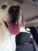 I didn’t understand a lot of people-talk then; but I heard the man say something about “home.” The director started to lead me through the outside door. The hoomans came outside and opened the back door to their truck. I love to ride so I hopped right in!