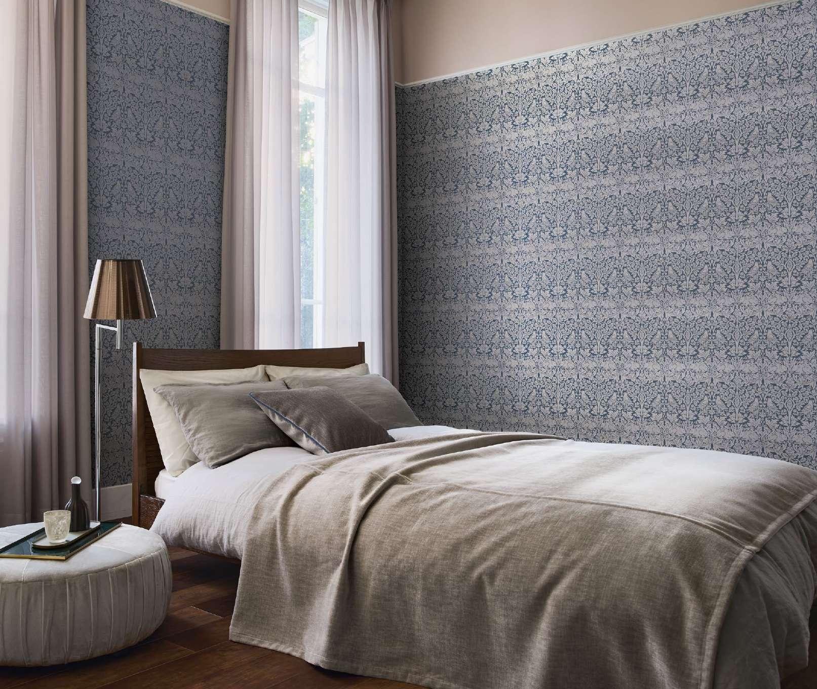 William Morris was as known for his poetry as for his art. Early chronicles and manuscripts provided Morris with a richly symbolic language of flowers to explore. Nature motifs abound, this collided with his deep interest in Medievalism and the storytelling art form of the chronicler. For more than 40 years, Morris & Co. designers documented the flora and fauna surrounding Morris’s workshops and within his gardens, distilling the sensation of being encircled by nature into a new revolutionary art of pattern design.