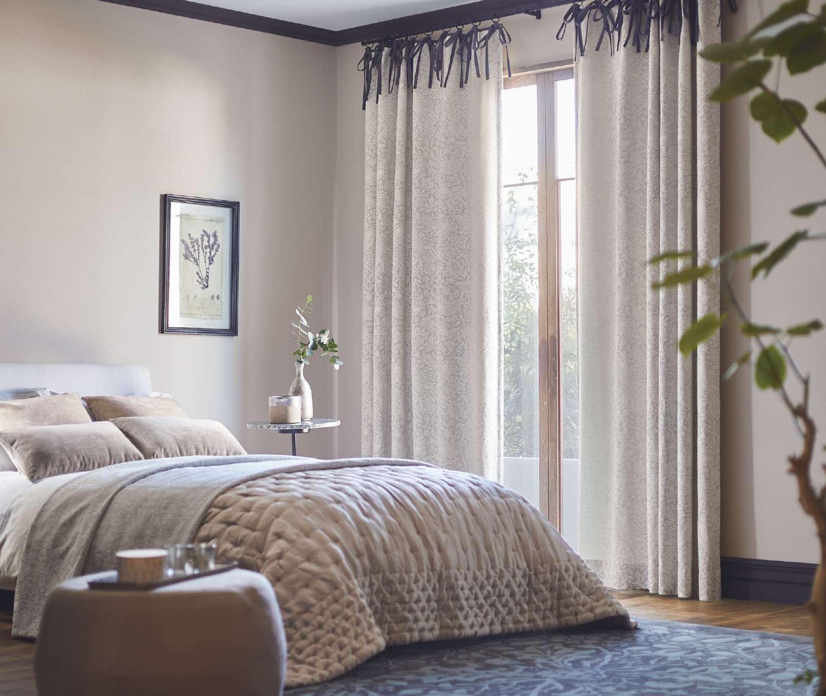 These stylish, chic-coloured rugs and wallpapers correlate with our natural stone floor tiles and outstanding, deep coloured, textural curtains creating an atmosphere of spatial tranquility and refinement.