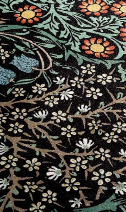 詩人としても知られていたウィリアム・モリスは、象徴的で優美な花言葉が収められた昔の物語 (クロニクル)や書物を好んでいました。 彼の身近に豊かに存在していた自然のモチーフと、中世 への深い関心、そして美しい物語を紡ぐ能力が織り重なり、彼の原動力となりました。