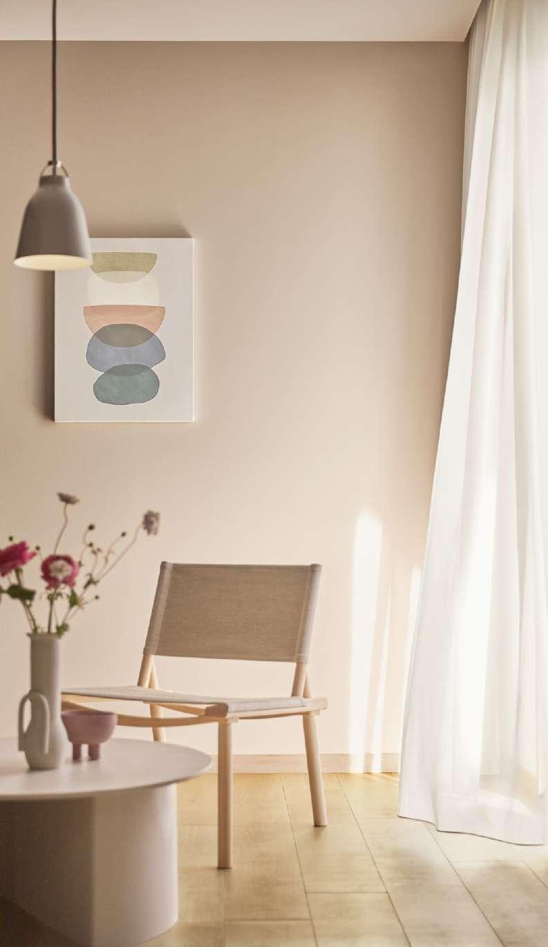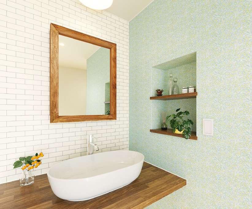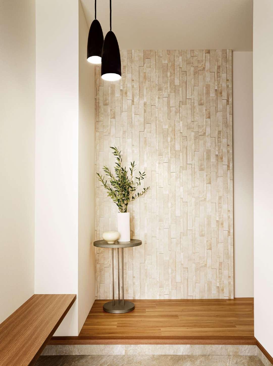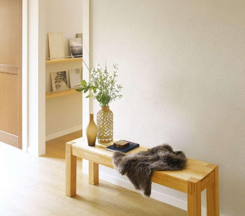 自然の風合いを感じるおおらかな塗りのテクスチャーに、自然界の色調から抽出したカラーリング。 緑あふれる大地で深呼吸するかのような、優しく癒される空間を演出します。