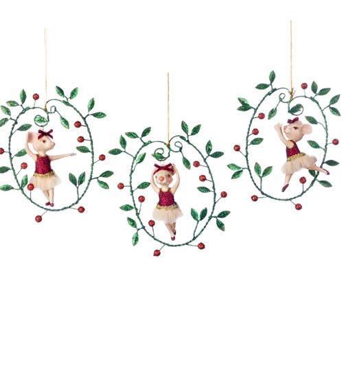 + PARADE MUS.LION/HIPPO WREATH ORN ASS/2 GRN 14CM B 89308