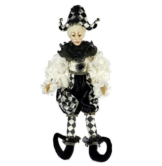 SEQ.JOINTED PIERROT JESTER DOLL W/BOX WH/BL 85CM