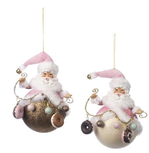 REGAL SANTA HEAD ON BALL ORN ASS/2 CRM/GLD 11CM