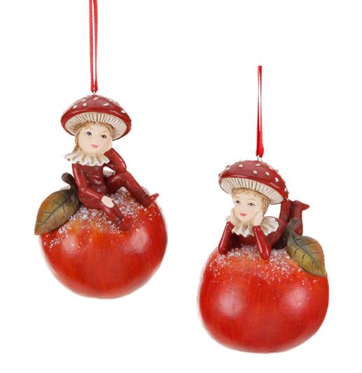 87403 SNOW WHITE SANTA APPLE ORN ASS/2 RD/WH 14,5CM