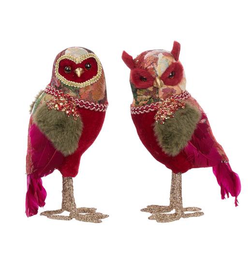 FABR.TART.OWL COUPLE ORN ASS/2 RD/CRM 20CM