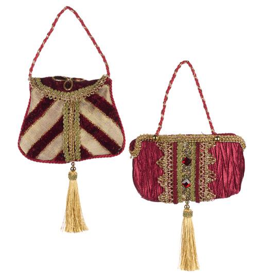 19601 + FABR.ART DECO PURSE/BAG ORN ASS/2 BURG/GLD 30CM
